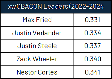 Among starters with a groundball rate above 50%, Max Fried is tied with Hunter Brown for the best K-BB% (17.6%), sporting an above-average mark while being an elite damage preventer. His deep pitch mix plays a huge role in his damage prevention, sporting three different fastballs, three different breaking balls, and a changeup that he can all mix in with ease.