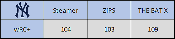 In theory, Anthony Rizzo and Giancarlo Stanton could return to their All-Star form, but entering the later stages of their careers, it’s hard to rely on that. Projections rightfully view them as overpaid veteran bats, and the Yankees will have to keep close tabs on them as the season carries on. Rizzo is in a bit of a more favorable position, projected for around a 110 wRC+, which should make him a strong option at first base, given his excellent glove at the position. As for Giancarlo Stanton, all signs point to what could be an ugly downturn.