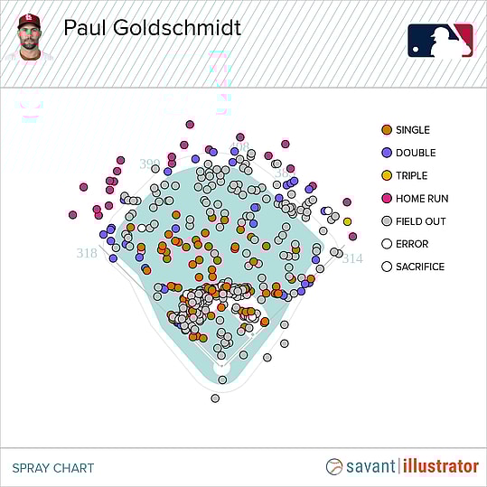 Paul Goldschmidt would have had 25 home runs had he played all of his games at Yankee Stadium, as a lot of his opposite-field contact would go into the short porch in right field instead of a fielder’s glove.