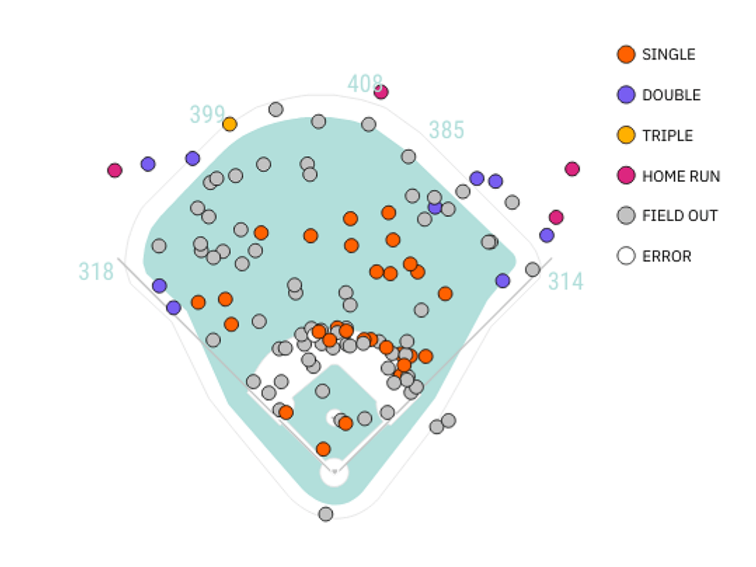Toro ranks in the 94th Percentile in Sweet Spot% (43.6%) while having an above-average .377 xwOBACON (Expected Weighted On-Base Average on Contact) which attempts to measure how well you impact the baseball. Paired with an 80th Percentile Whiff Rate (18.2%) and 55th Percentile SEAGER score, you have a hitter who is above average in a variety of important metrics. The results speak for themselves, sporting a 135 wRC+ and .800 OPS through his first 41 games.