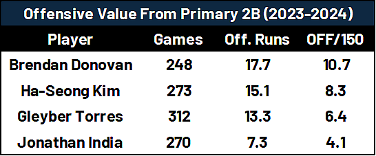 While it doesn’t seem like Ha-Seong Kim would help the offense much, 8.3 Offensive Runs would have ranked fourth on the Yankees last season, slotting between Jazz Chisholm (10.2) and Giancarlo Stanton (4.0). When looking at the four starting position players who the Yankees have lost this winter to the players replacing them and their projected production, the gap in overall production isn’t as massive as you would think.
