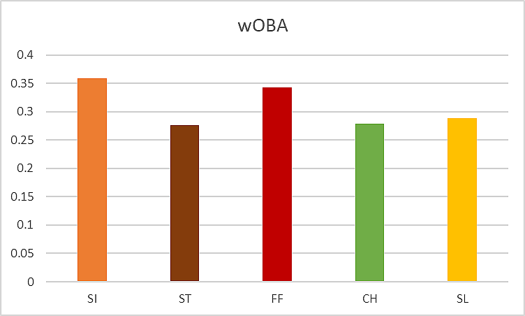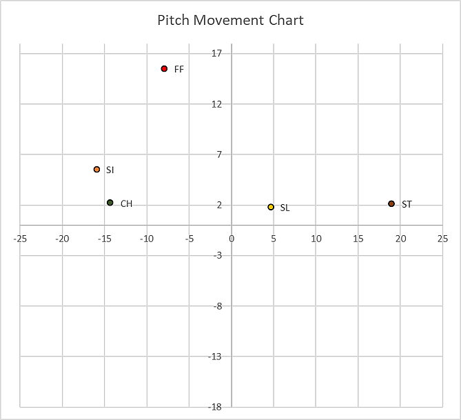A four-seam fastball with enough ride up in the zone can help establish a vertical profile, as he can throw his changeup or slider off of that fastball to generate swings in the lower part of the strike zone or do the inverse and use his slider/changeup to then elevate the four-seamer for a whiff. His four-seam fastball and slider work extremely well off of each other due to little horizontal movement but well over 10″ of vertical separation, and now left-handed hitters are finding themselves swinging more against his stuff.