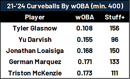 The more you expose the league to a pitch, the more they’ll adjust and adapt to try and counteract it, and it’s reflected in Loaisiga’s groundball rate. Teams know to expect it, and it’s why his launch angle on that pitch went from negative in 2021 to positive from 2022-2024 with a worse wOBA allowed. Jonathan Loaisiga’s sinker is still incredibly difficult to do damage against, but it could be even better if he mixed in more changeups and curveballs to vary his looks and turn two-strike counts into strikeouts.