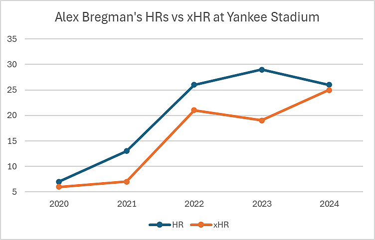 A hitter who has been reliant on the Crawford Boxes in Minute Maid Park to launch the ball out of the yard, Bregman is a pull-side power hitter who would come over to a ballpark where those flyballs would be outs. Baseball Savant has an Expected Home Run metric that would have Bregman hitting just 25 home runs instead of 26 this season, but previous seasons have shown even more stark differences in actual and expected home run totals.