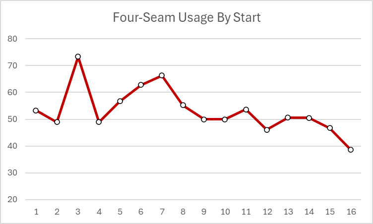 In his first 8 starts, Cam Schlittler had a 4.22 FIP with a 58.2% usage rate on the four-seamer, but over his final eight starts of the regular/postseason, he threw that pitch 48.3% of the time with a 2.50 FIP.