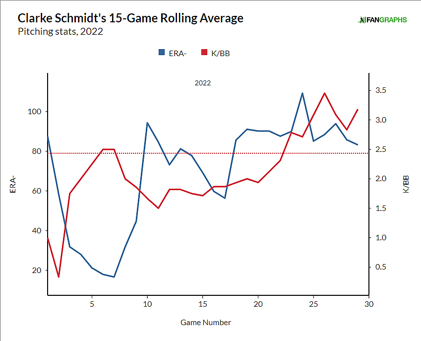 The Yankees have Frankie Montas and Luis Severino as impending free agents following the 2023 season, presenting questions about how the Yankees will fill potential holes in their rotation in the future. While they can still negotiate with Montas or Severino in free agency, if Clarke Schmidt is able to perform at a high enough level, the Yankees can view Montas/Severino as a luxury, not a need. Part of having multiple high-priced players like Aaron Judge means surrounding them with cost-controlled talent, and Schmidt has plenty of club control.