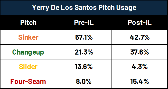 After an injury in June put his season on pause, Yerry De Los Santos has returned to the bullpen and been brilliant, as some key tweaks have made him a truly intruiging weapon for this team.