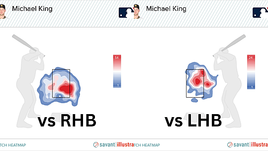 Michael King is attacking down and away to right-handed batters and up and in to left-handed batters, which means he’s throwing his sinker on the same side of the plate horizontally, only shifting his cues vertically. He’ll actually shift his sinker location dramatically if he falls down 1-0 in a count, being more willing to throw the sinker in, but why would the count affect when his sinker is more or less effective?