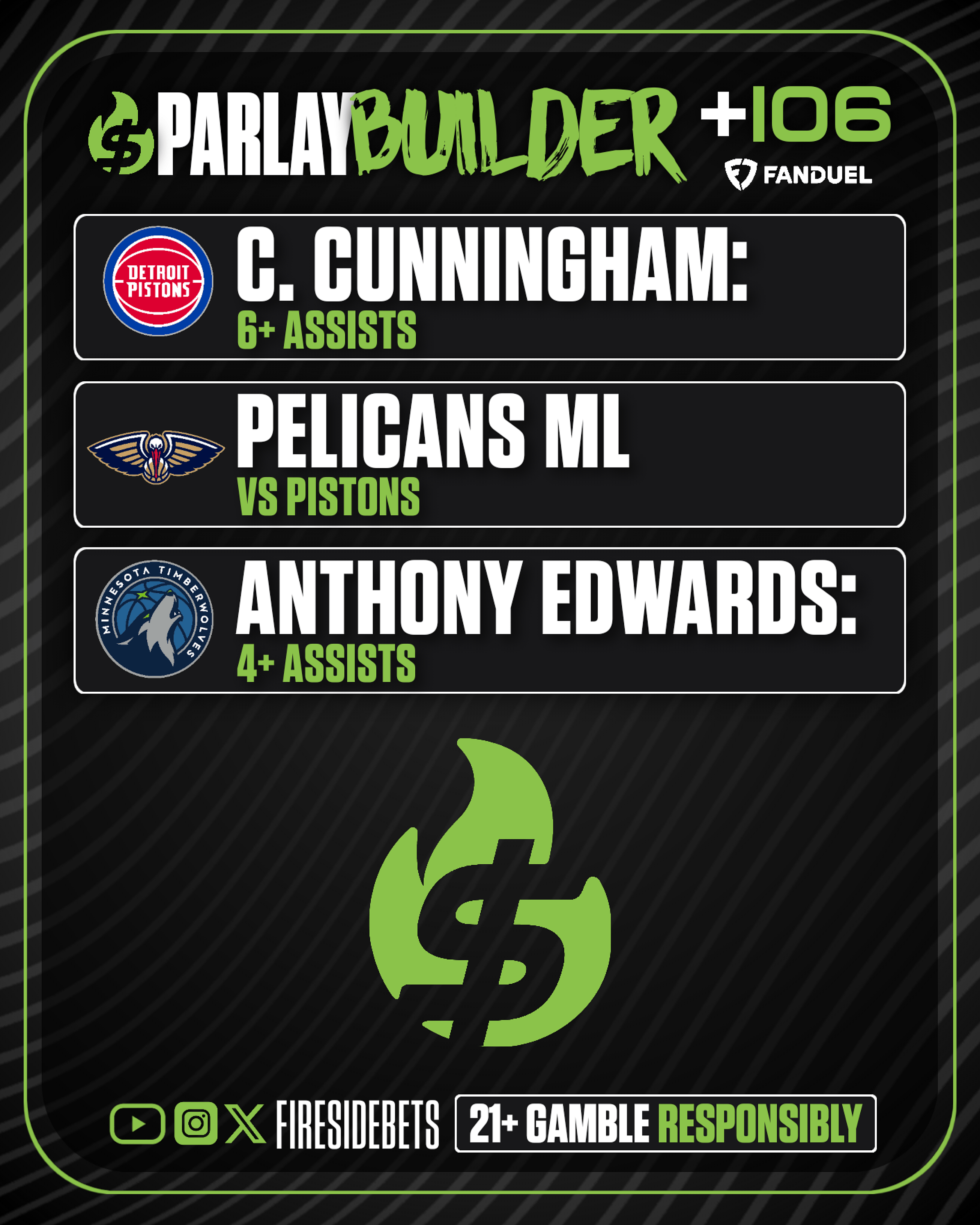 - Cade Cunninghmaton: 6+ Assists (Pistons)