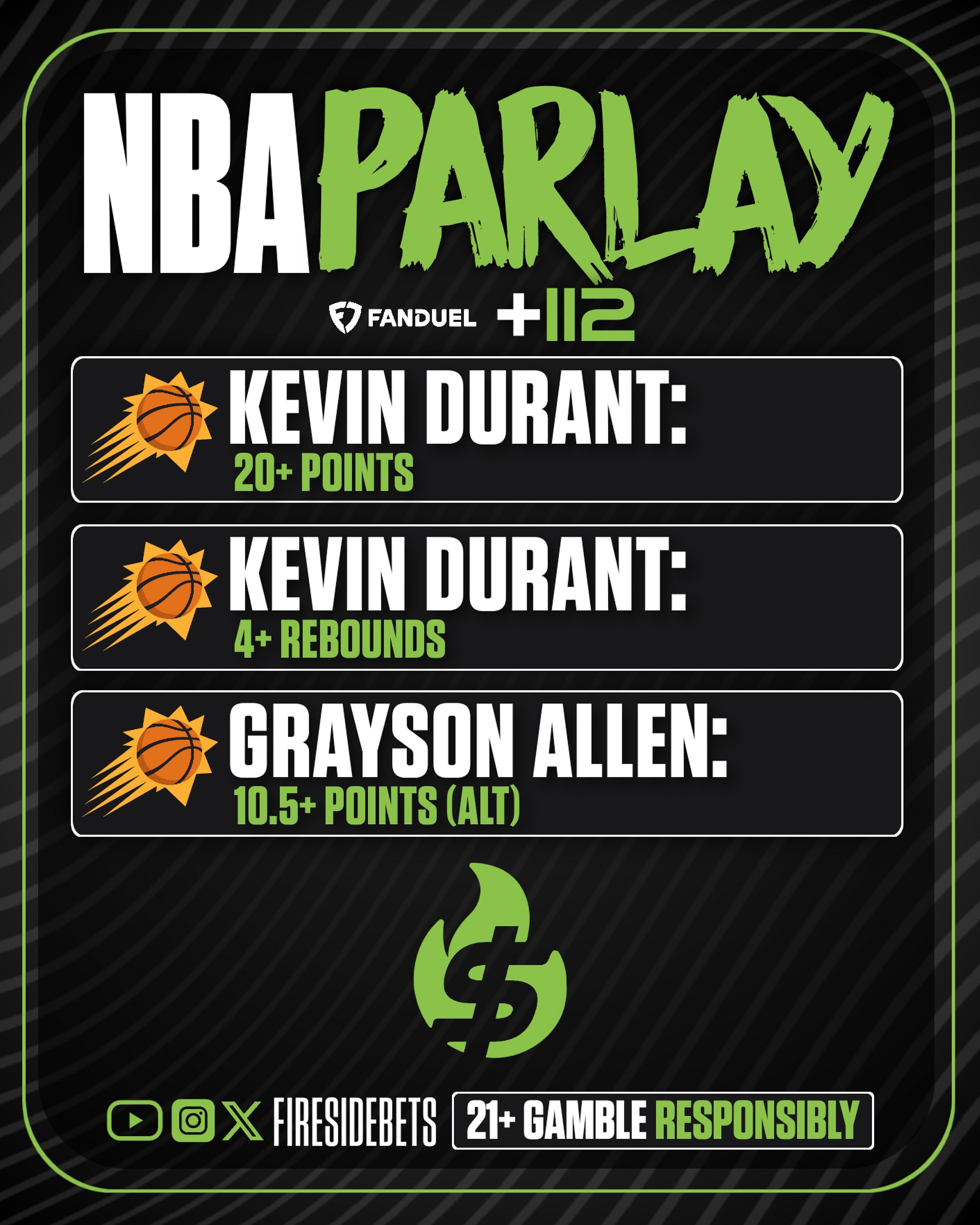 The Knicks are angry and ready to take it to the 76ers at home at MSG. Jalen Brunson is red-hot, and Maxey has been solid and insane since returning from injury. We are leaning on the energizers to get it done for us in that game. The Suns have a competitive matchup, and Kevin Durant always shows up to play, so we are leaning on him to get the job done.
