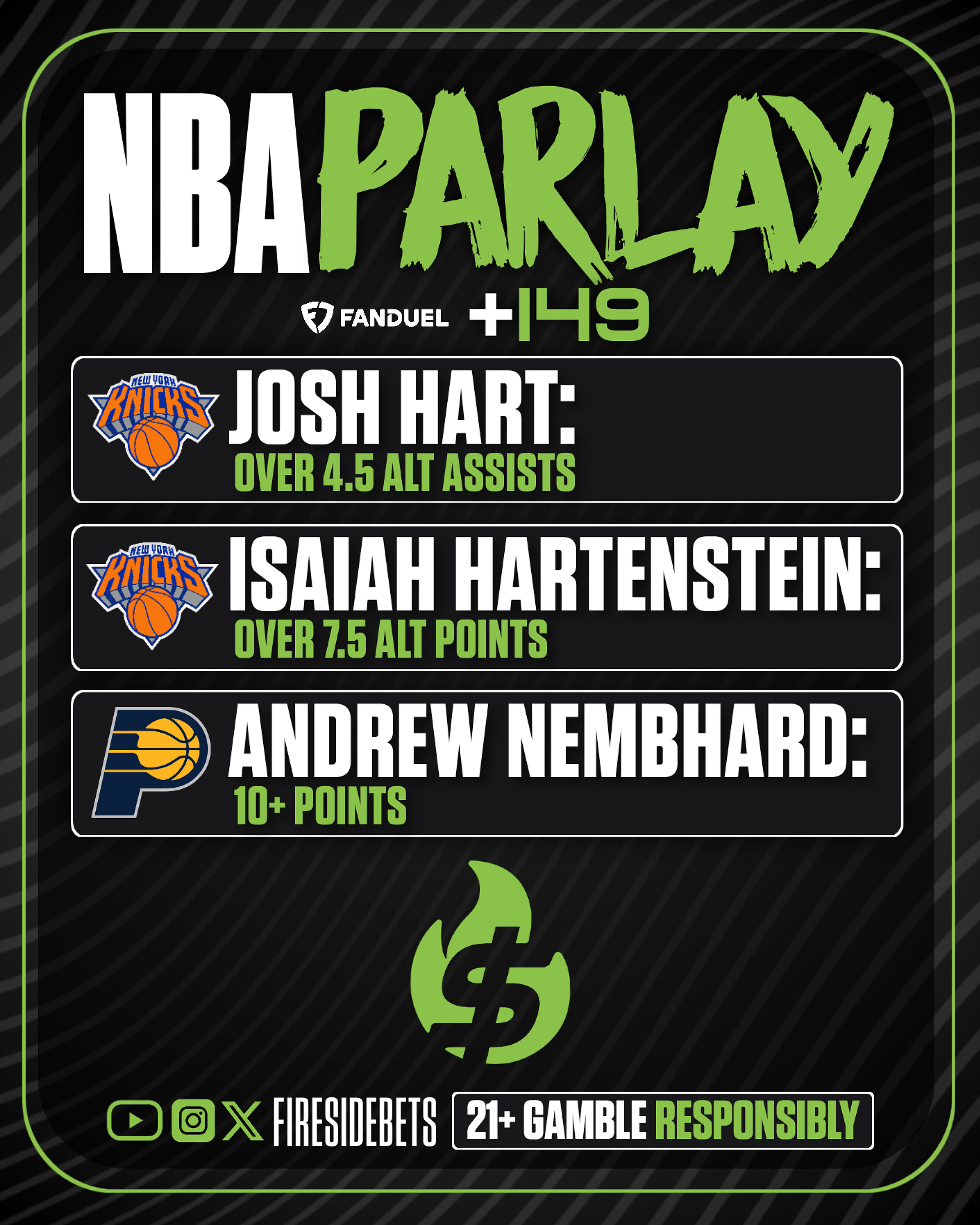 Isaiah Hartenstein is a great facilitator for a big man and has hit this line in five of eight games this postseason. Expect him to play a lot more with Mitchell Robinson out as well.