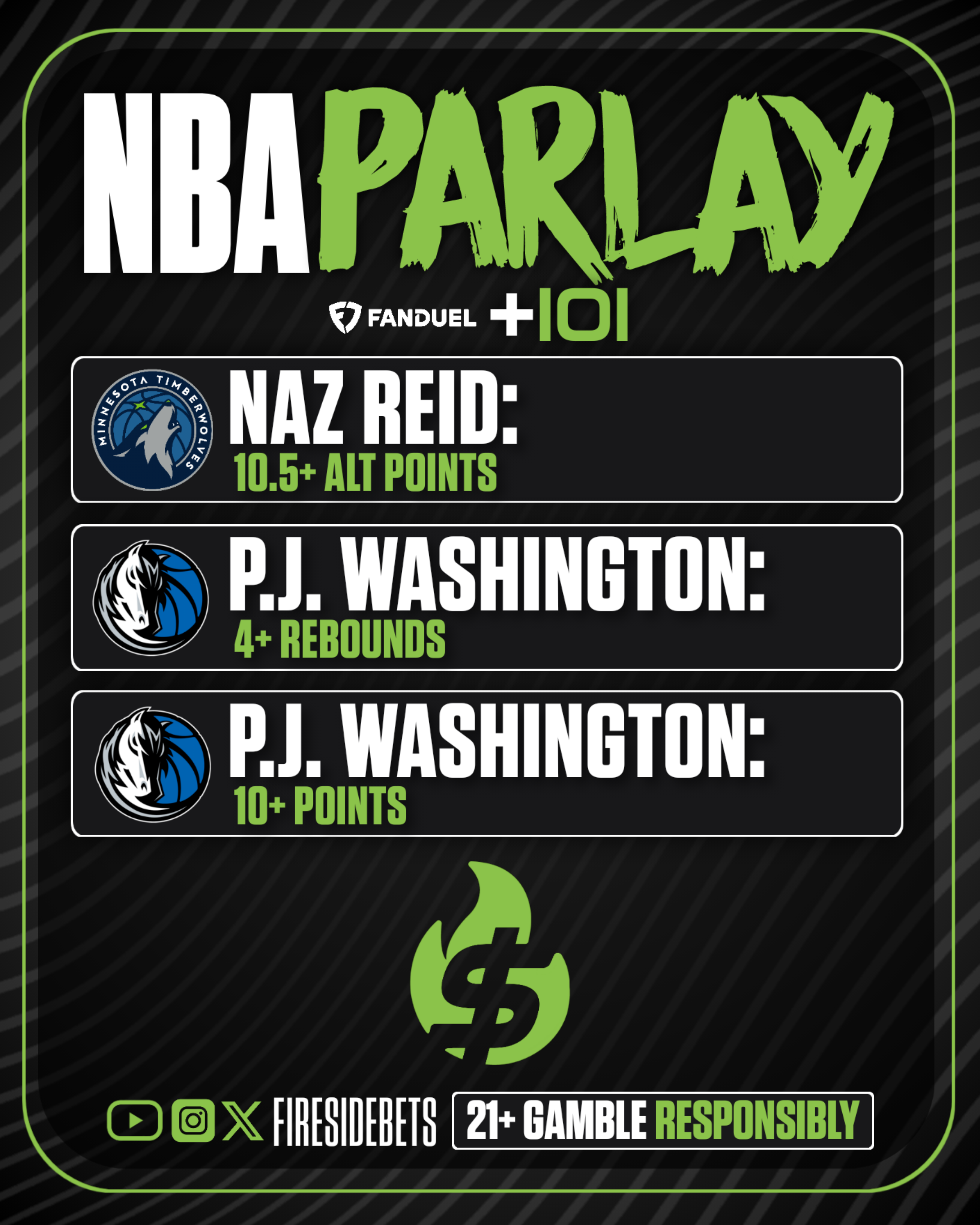PJ Washington hasn’t missed this line a single time all postseason, making it one of the highest percentage looks you can get for a leg.