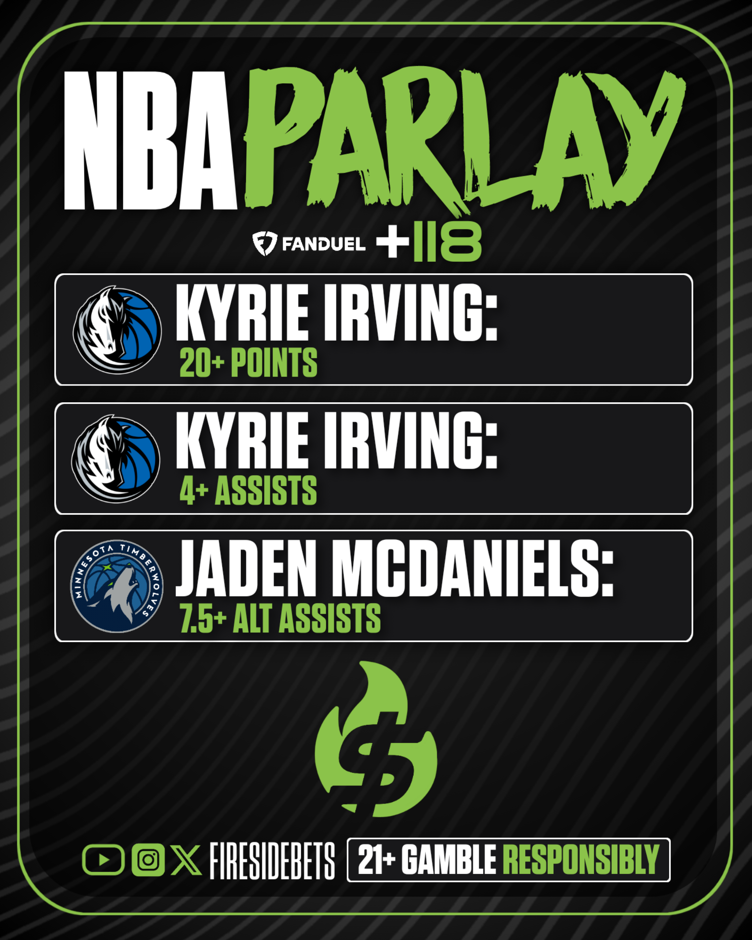 Kyrie Irving has yet to miss this line against the Timberwolves in a game dating back to 2018, a 10-game streak. In the postseason, he’s hit this line in 73% of games played as well.