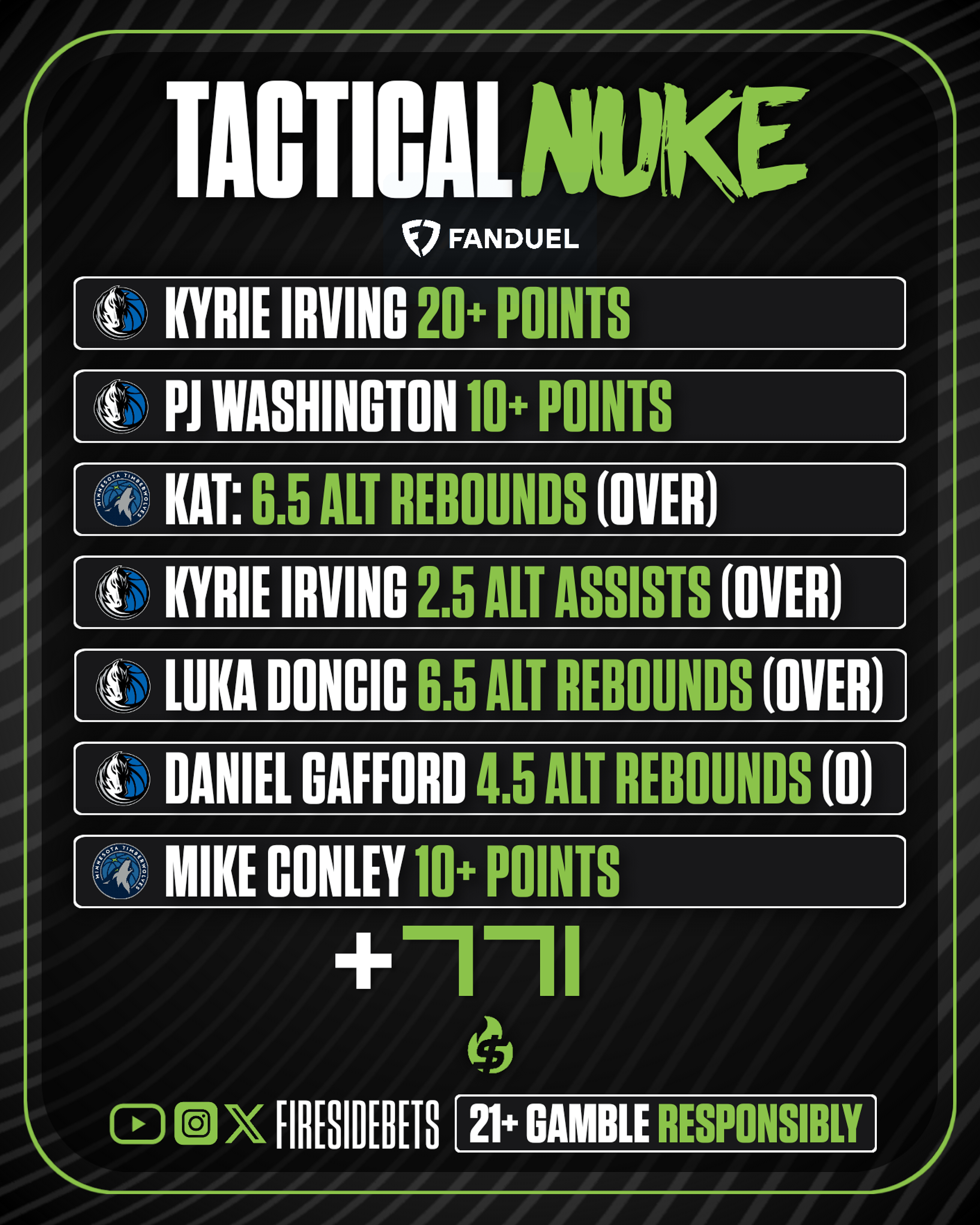 We have a number of high-quality plays for the Timberwolves V Mavericks Game 1 matchup tonight! Here’s the breakdown for each individual bet.