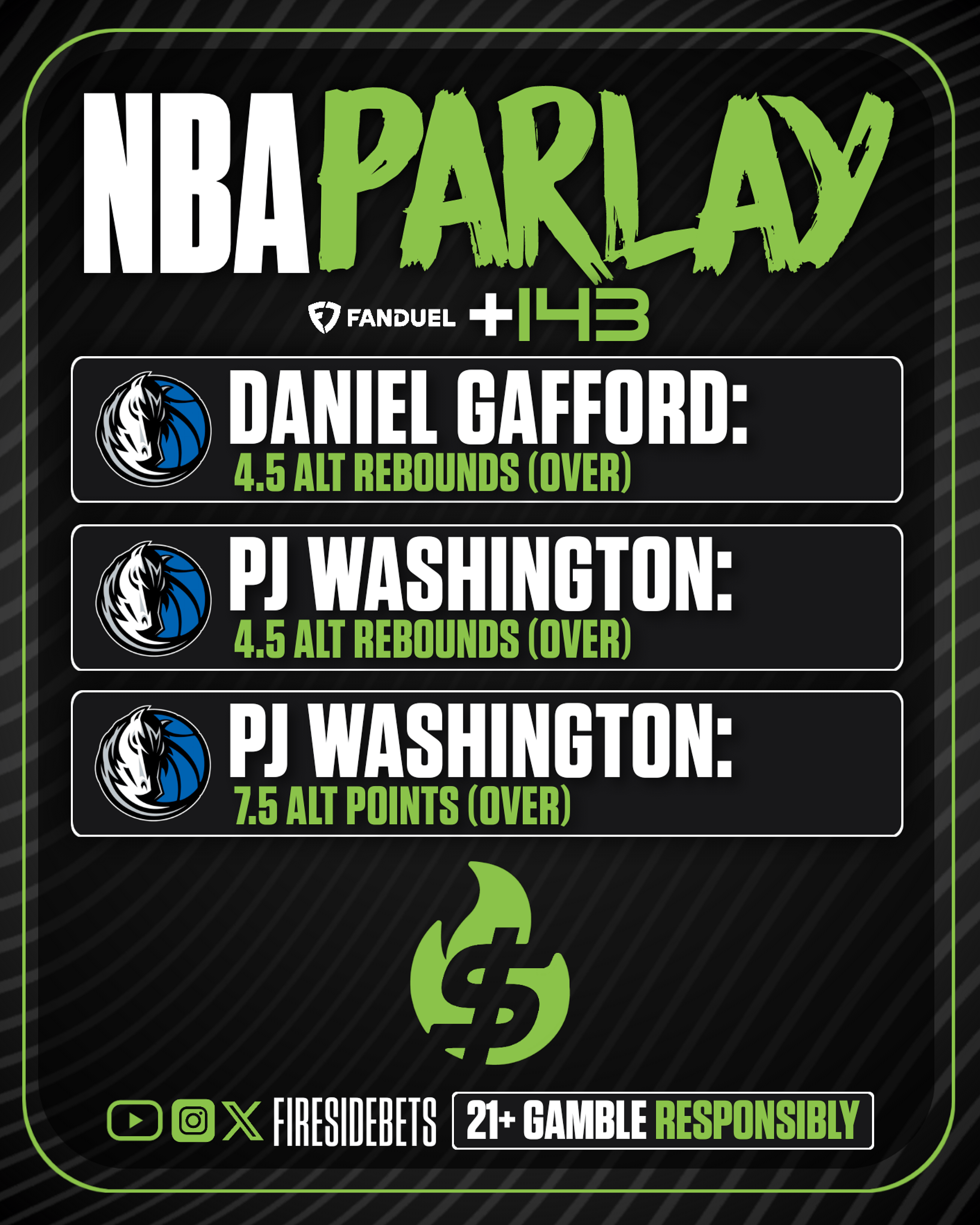 - Daniel Gafford: 4.5 Alt Rebounds (OVER)
