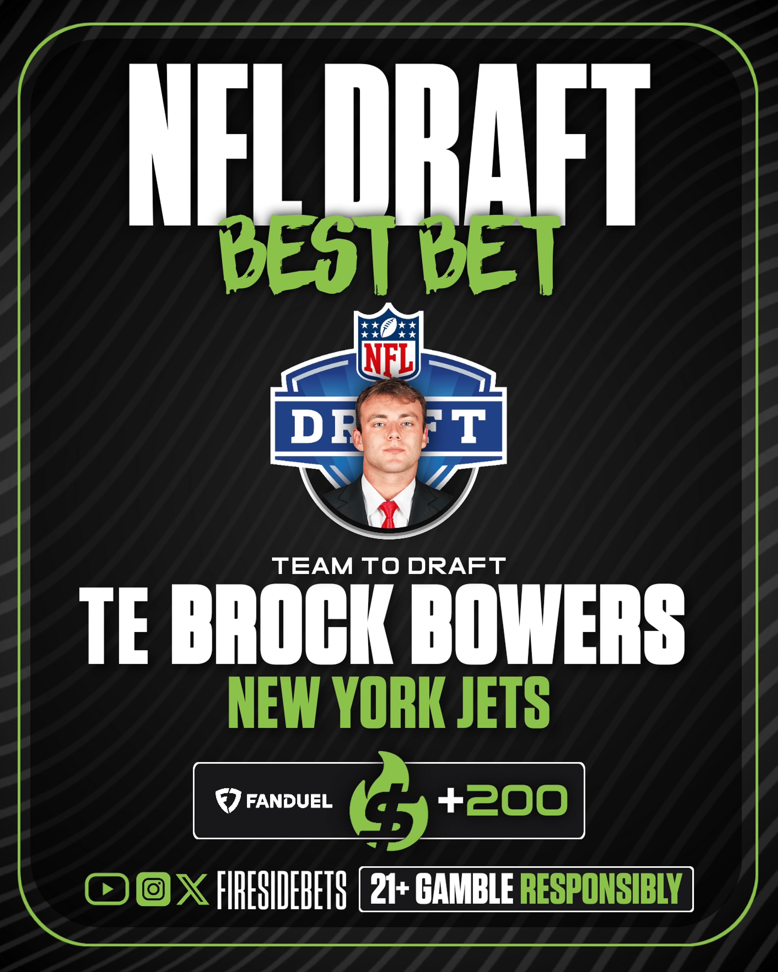 The Jets are the heavy favorite to select Georgia TE Brock Bowers with the No. 10 pick in this draft. Seeing the line at +200 is surprising as we near draft time. The Jets are determined to load up on offensive weapons for Aaron Rodgers and Bowers could very well be the pick at No. 10, as he has been projected to be for the majority of the past month. The Jets also had Bowers in for a visit on the first day of voluntary offseason workouts, adding fuel to the fire for their rumored interest in the class’s top tight end prospect.