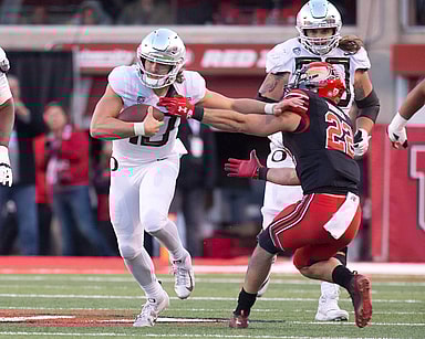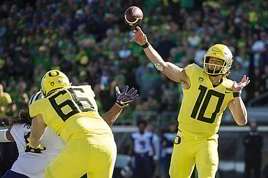 New York Giants quarterback target Justin Herbert is the projected top draft pick, but struggled against Arizona on Saturday.