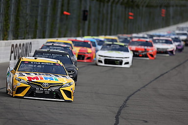 Kyle Busch survived a grueling fuel mileage race with a broken shifter to win the Explore the Pocono Mountains 350…
